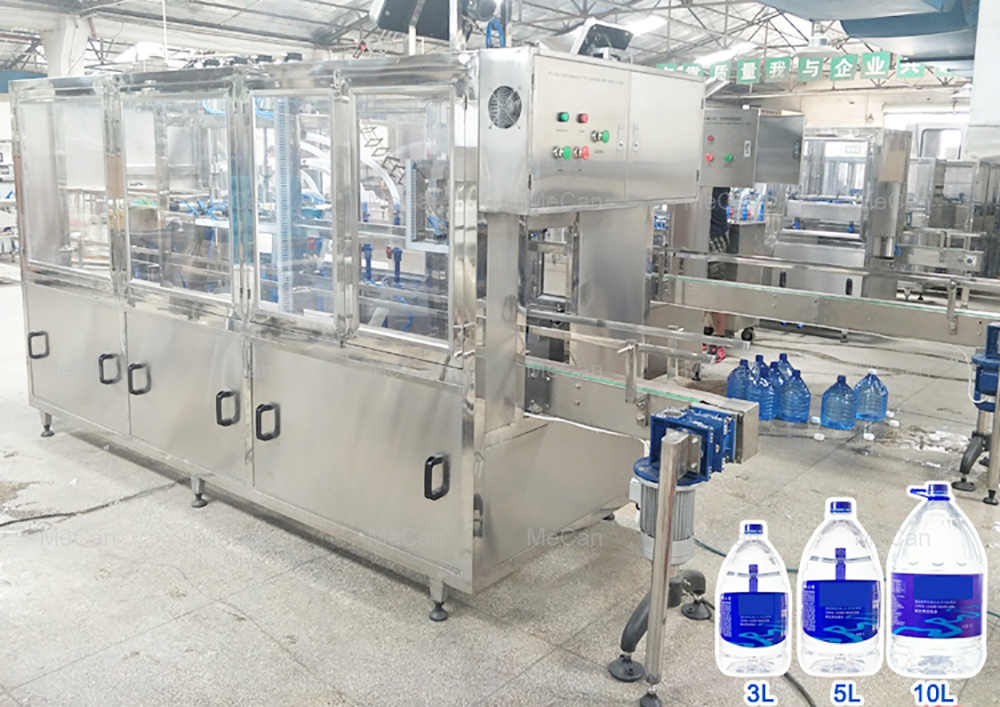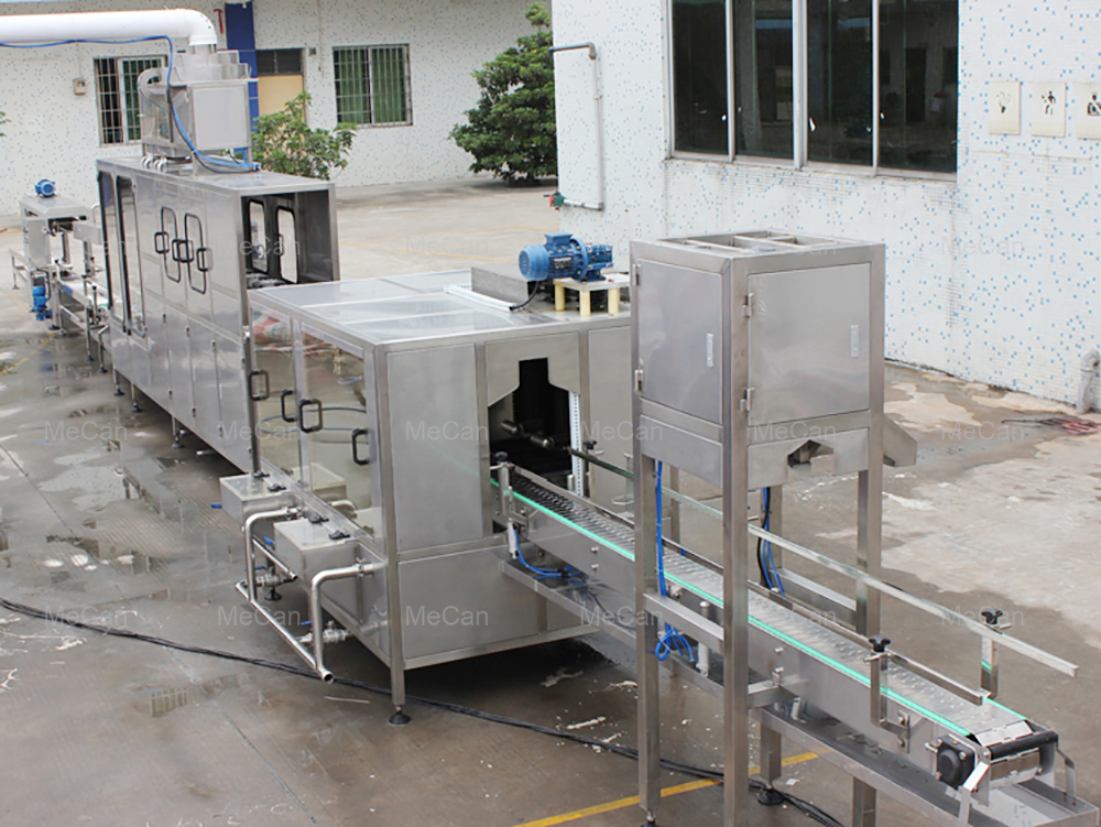 This filling line specially for 3-6 Gallon barreled drinking water, it integrates bottle washing filling and capping into one unit. In order to achieve the purpose of washing and sterilizing. The washing machine uses multi-washing liquid spray and thimerosal spray. The capping machine can cap barrel automatically. This line equips with water spraying device in order to ensure those caps sterile and clean.