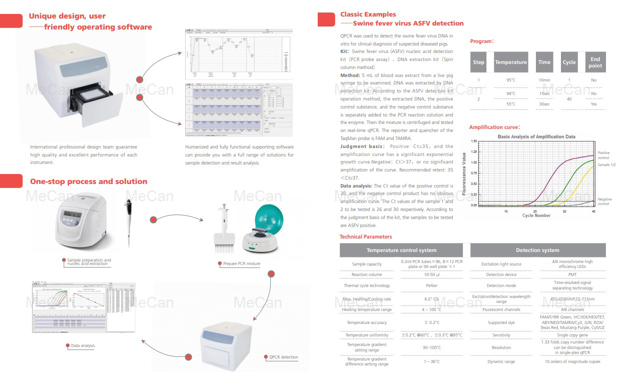 MeCan Medical Professional Conventional PCR Machine DNA Extraction Machine DNA Test manufacturers,MeCan Focus on medical equipments over 15 years since 2006. It supports the application of all common QPCR detection modes.safety testing, and forensic applications. If you are interested in the PCR Machine, please contact us in time.