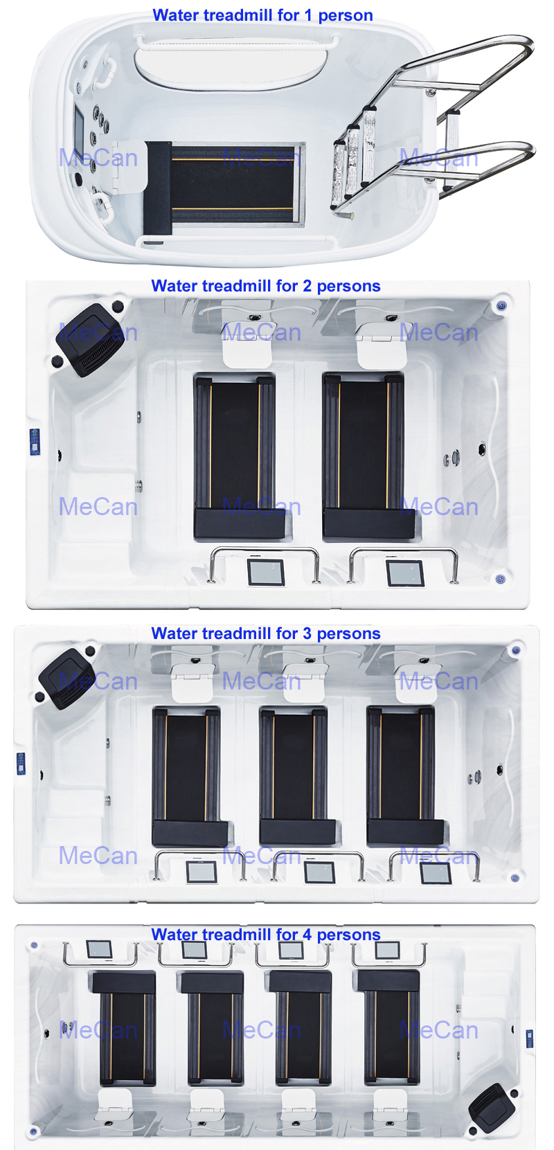 Water treadmill for 1-4 persons