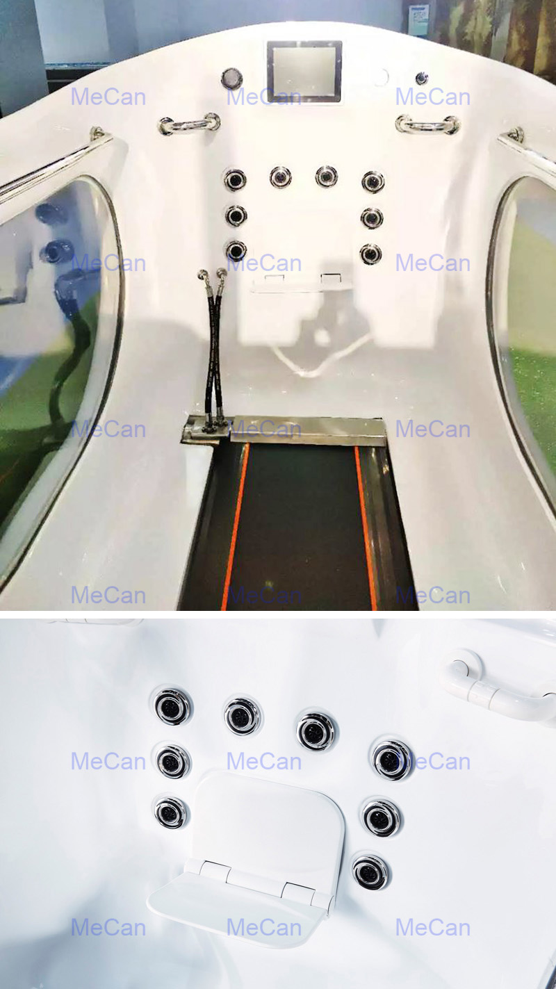 Our under water treadmill with strong functions including running, SPA massage and medicine hydrotherapy, it is moderate water pressure can relieve muscle soreness,Protecting the knee joint,good for treating arthritis,good for improving cardiopulmonary function,accelerating metabolism and benefit for human body immunity,suitable for fitness, medical and lose weight.